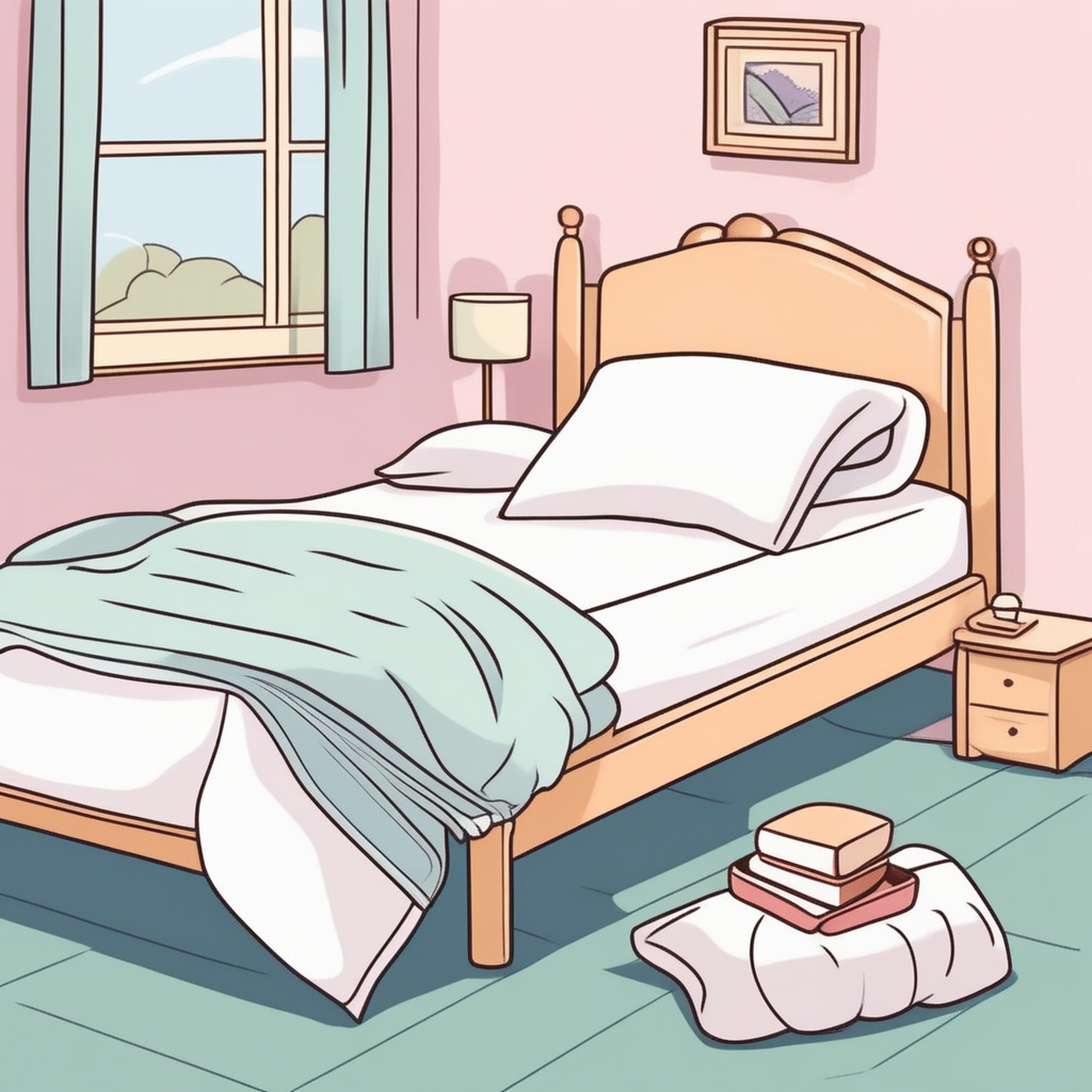 잠자리에서 일어난 후 시트, 담요, 베개를 정리하여 침대를 깔끔하게 정돈하다