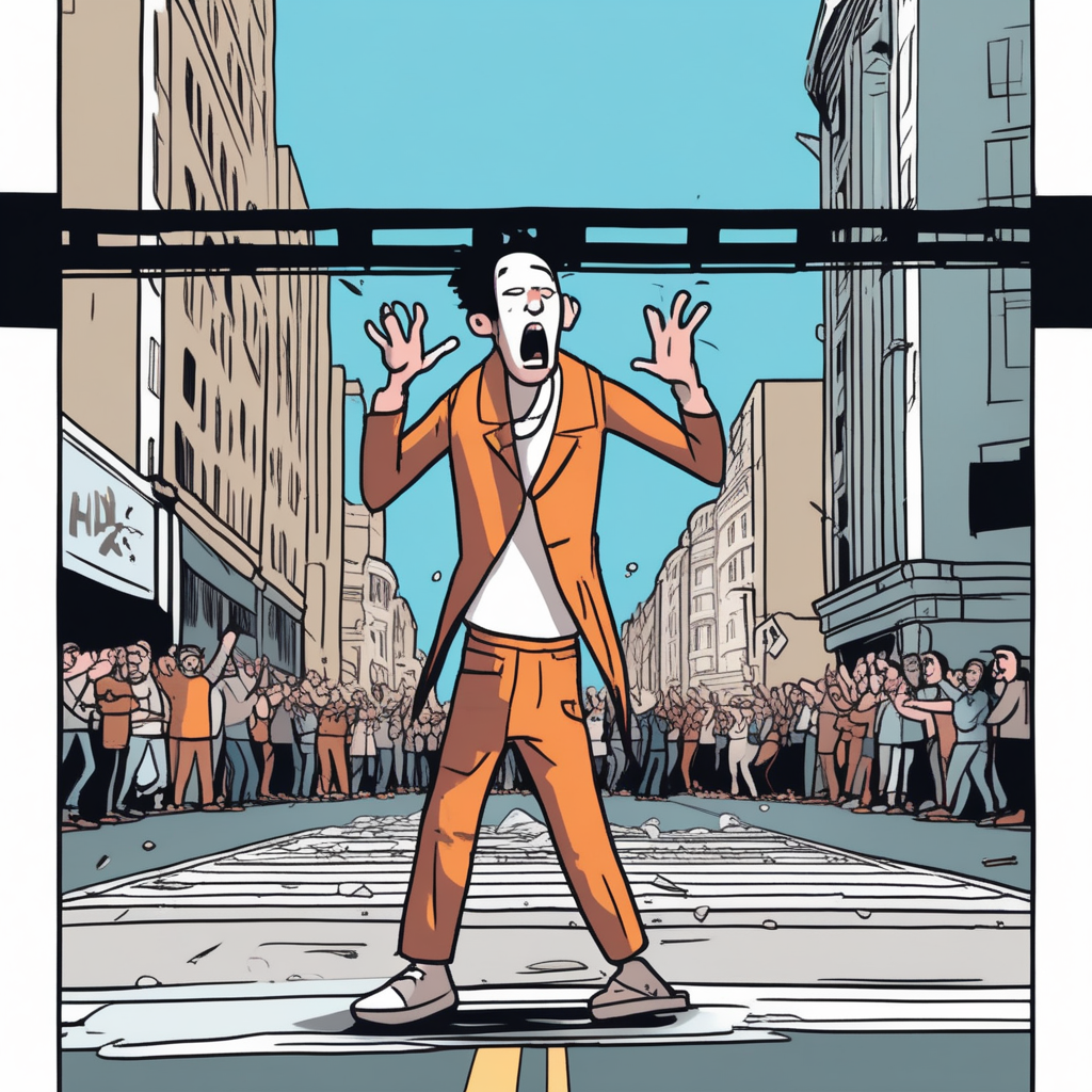 Hi! Nick performs dramatically exaggerated acting in the street! Ah!