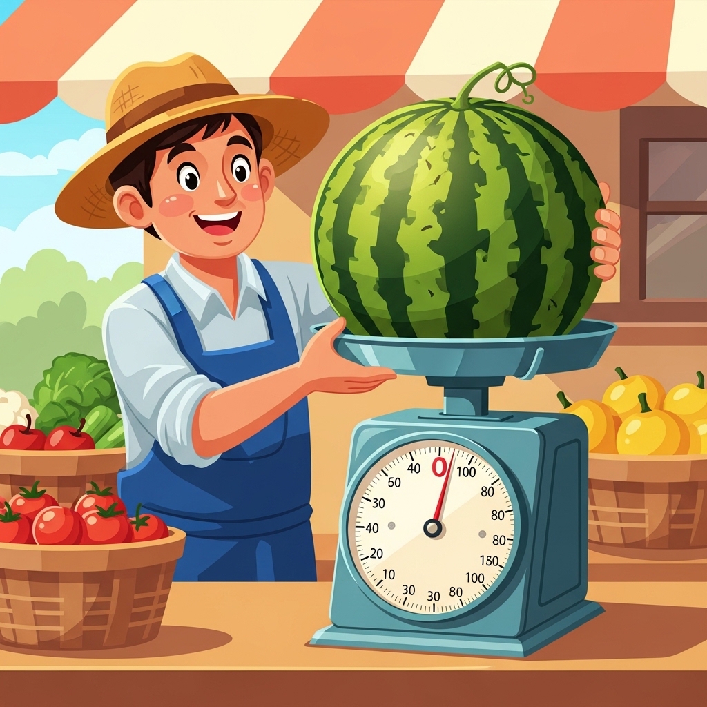 The weight lifter is getting weighed! Remember: weigh sounds like weight!