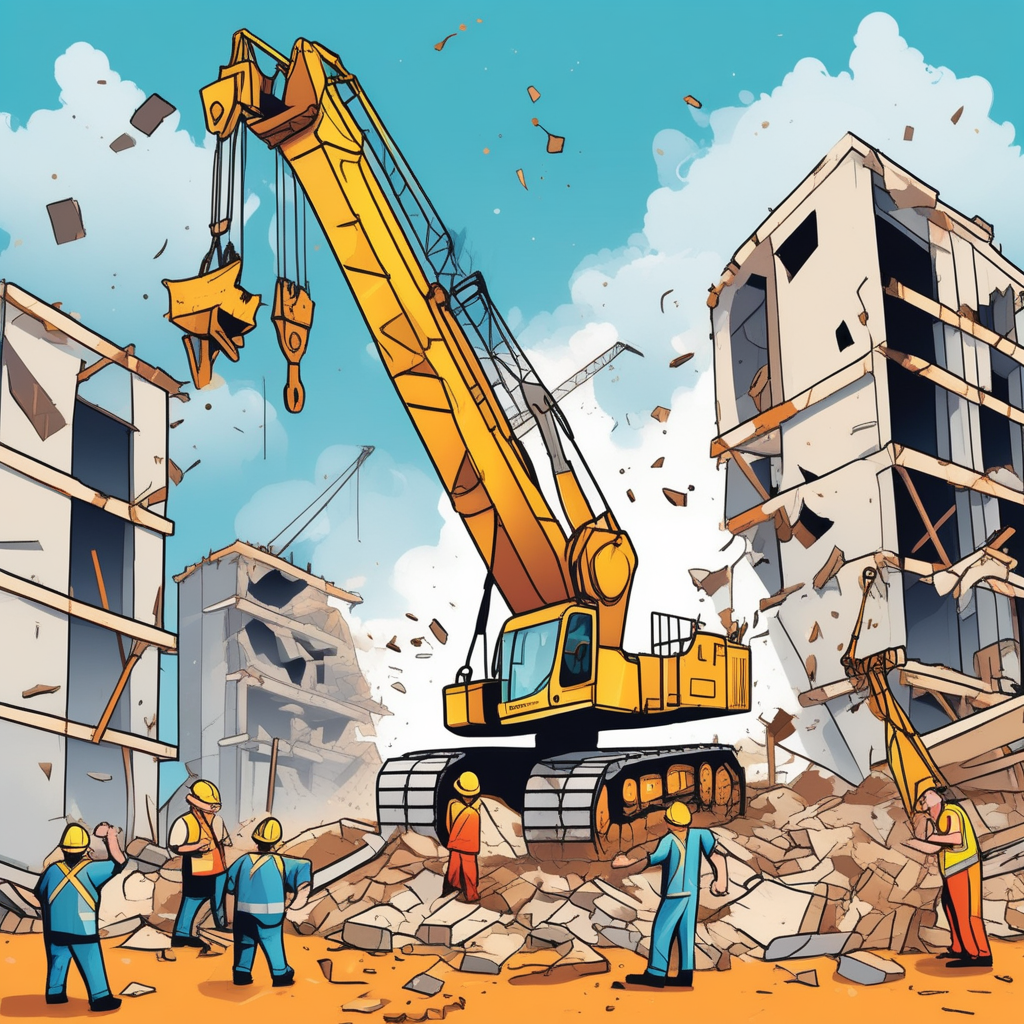 크레인이 멈추면, 잔해를 털고 표지판을 내려!
