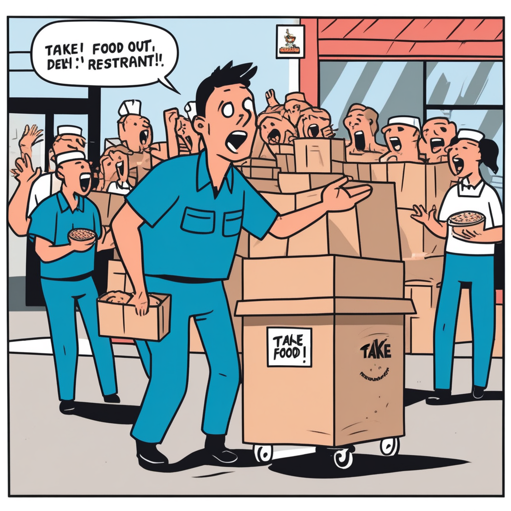 TAKE! OUT! Taking the packaged food outside!