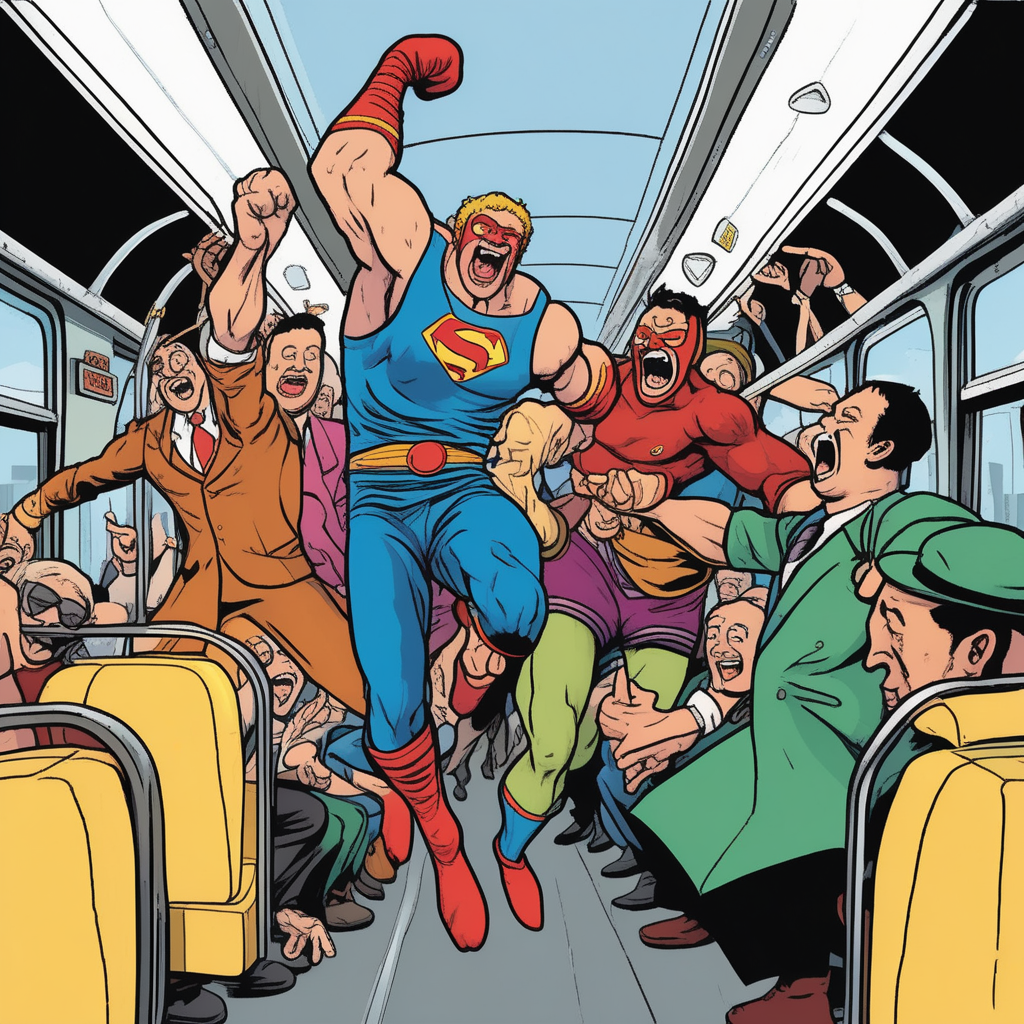 버스에서 레슬링 스케치! 우스꽝스럽게 과장된 풍자극이야!