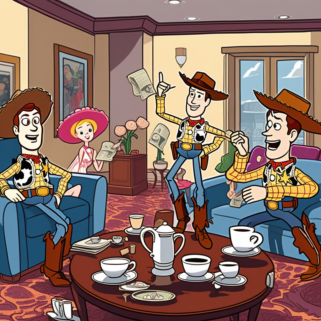조용한 라운지에서 우디가 갑자기 난동을 부려요!