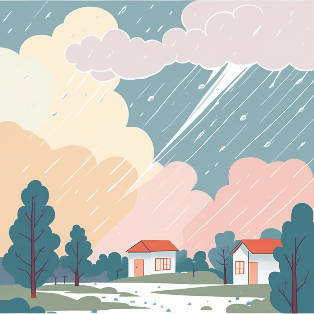 A violent storm with thunder, lightning, heavy rain, and sometimes hail
