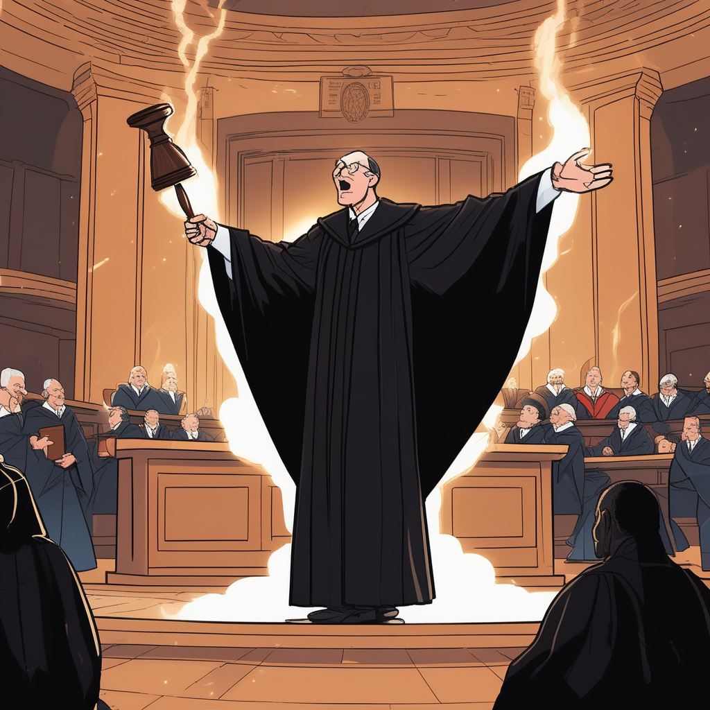 Center + Turn + Swoosh! The judge delivers perfect sentences!