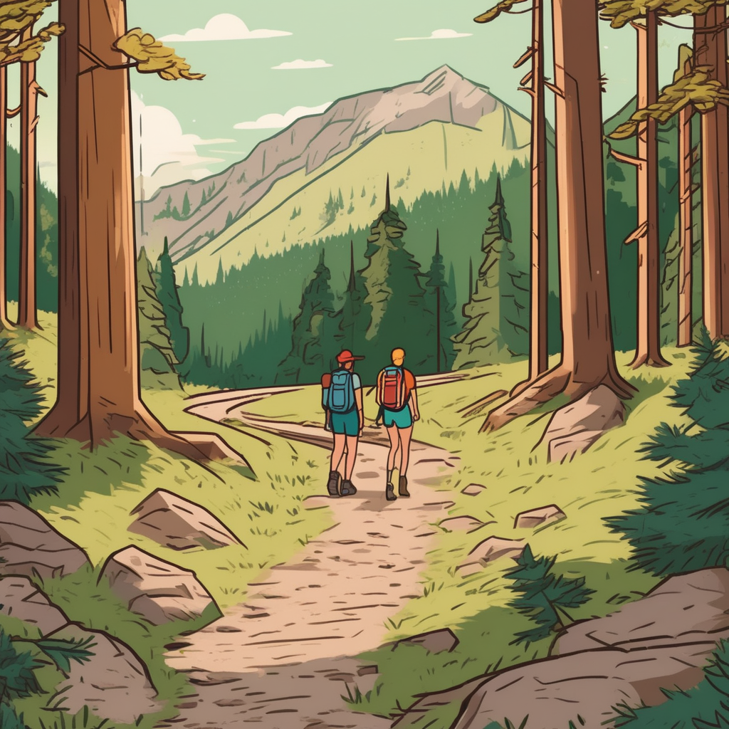 "The hiking trail bifurcates here - left leads to the waterfall, right to the summit."