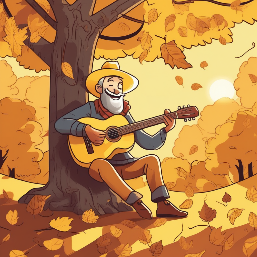 A yellow-hatted fellow plays music so mellow