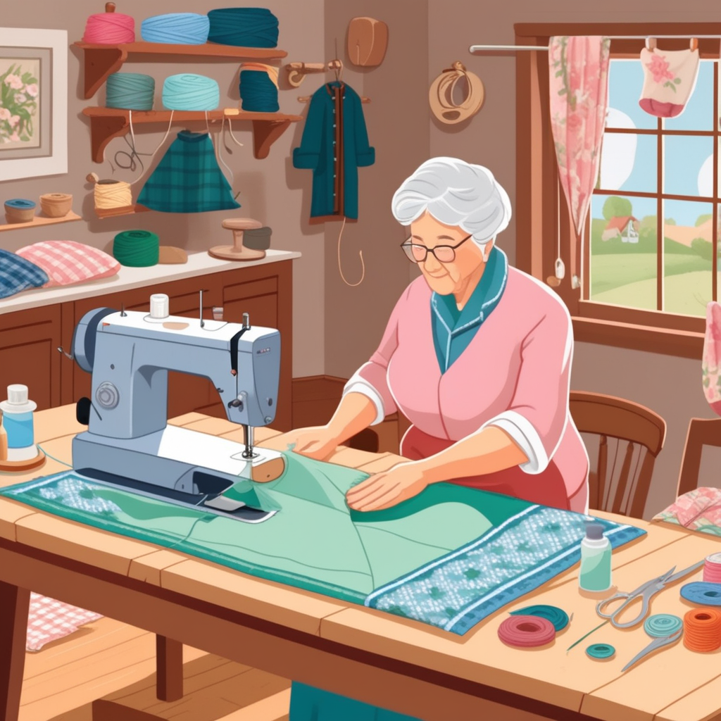 "She forgot her thimble and ended up with more holes in her finger than in the fabric."