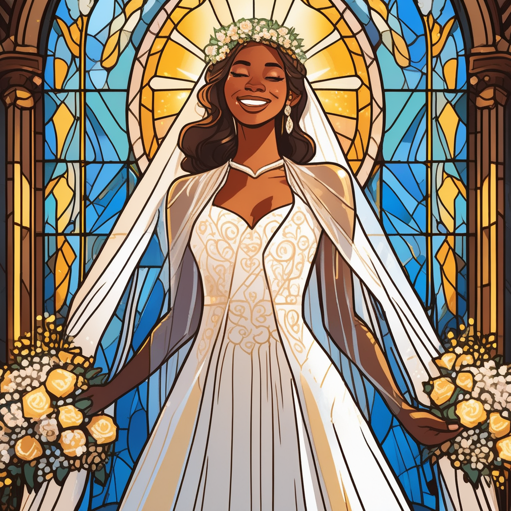 행복한 광채가 빛나는 신부