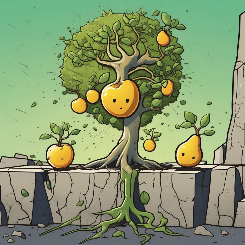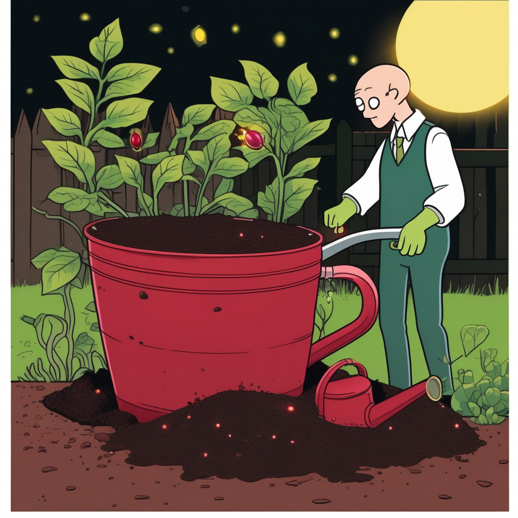 테이크 루트! '테이'씨가 '루'비를 땅에 묻어 보물 나무를 키우려고 한다. 루비가 땅에서 뿌리를 내려 보석 나무가 되는 모습을 상상해보세요.