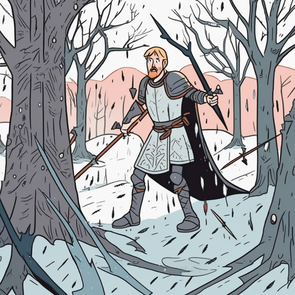 Howard the coward hides as arrows showered down!