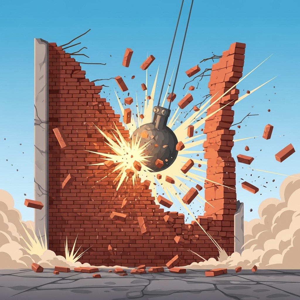 단 한 번의 충격으로 벽을 완전히 무너뜨린다.