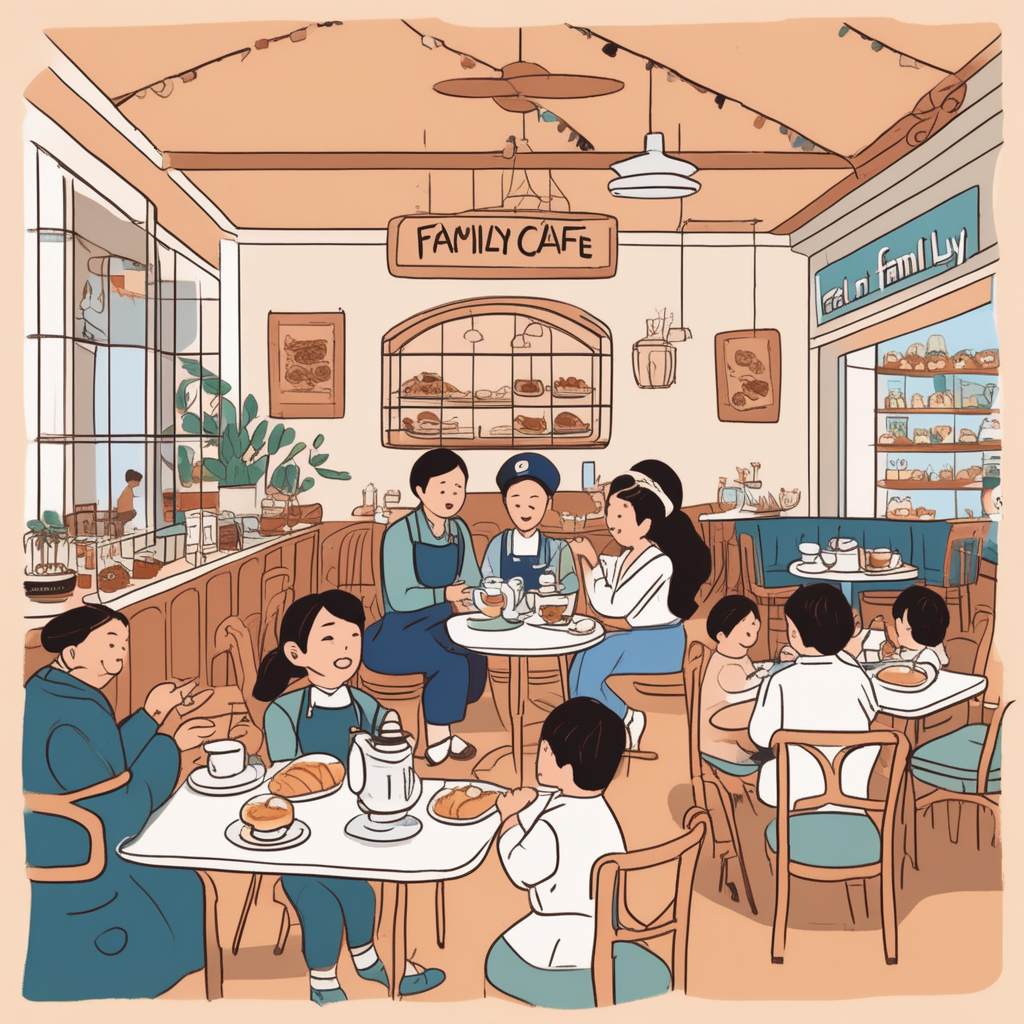 '패밀리 프렌들리'를 '패밀리가 프렌치 들리는 곳'으로 연상해보세요. 온 가족이 프랑스 카페에서 편안하게 차를 마시며 아이들도 뛰어놀 수 있는 안전하고 따뜻한 분위기를 떠올리면 됩니다.