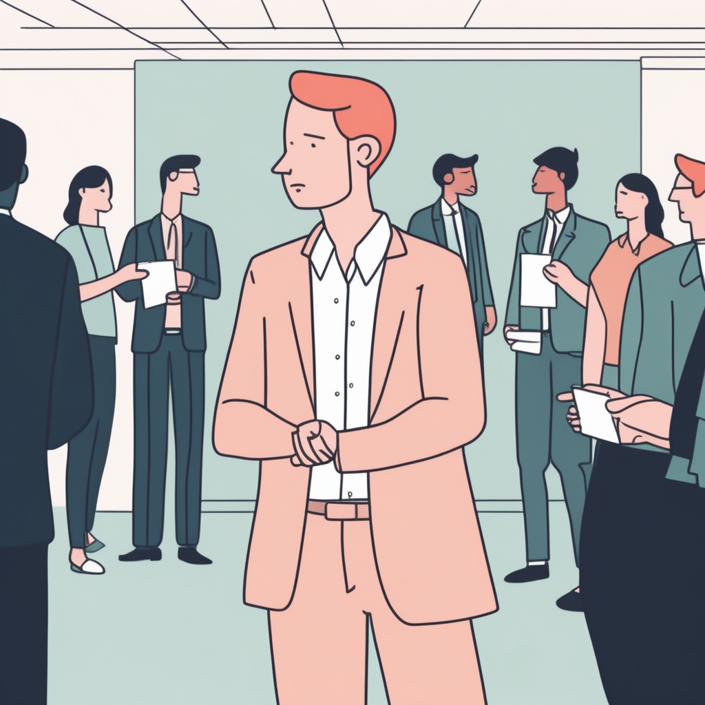 "He's so shy that he hides in the bathroom to avoid socializing at office parties."